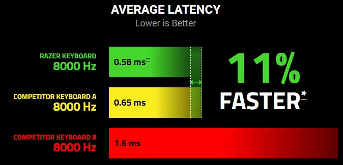 Lert’s talk about the potential elephant in the room: human reaction time averages somewhere between 150 and 250 milliseconds. We’re talking about a keyboard that shaves fractions of a single millisecond off your input latency, marketed to humans who physically can’t react in under 150 milliseconds. The math may or may not work, admittedly that’s for someone who makes a lot more money than me to decide. The 8000Hz polling rate sounds impressive until you realize we’re arguing about improvements measured in tenths of milliseconds when your brain operates on a timescale hundreds of times slower.